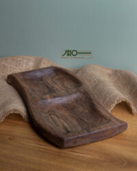 این ظرف سرو اختصاصی از چوب گردو ساخته شده است و ابعاد آن 40 در 18 سانتی متر است و یکی ظرف یک تکه به حساب می‌آید. روی آن نیز با روغن گیاهی همل پوشش و جلا داده شده است. این روغن کاملا آب‌گریز است و از نفوذ رطوبت به درون چوب محافظت می‌کند. تخته سرو با این طرح و به این زیبایی را هر جایی پیدا نمیکنید و این تخته بر روی میز شما به خوبی خواهد درخشید.